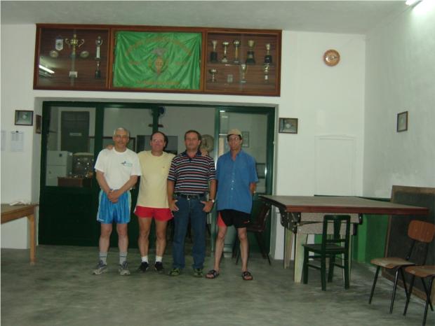 No interior da Sociedade Columbófila Corvalense na companhia do Domingos, Presidente da Colectividade, eu, Manuel Alberto e o José Quintas.