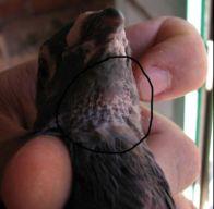 O columbófilo vê no pescoço, zonas sem penas ou que têm os canhões partidos com um tamanho de 2 a 3 mm.