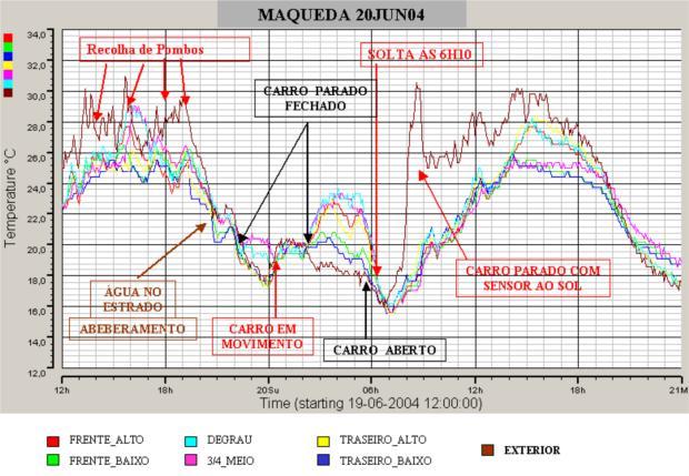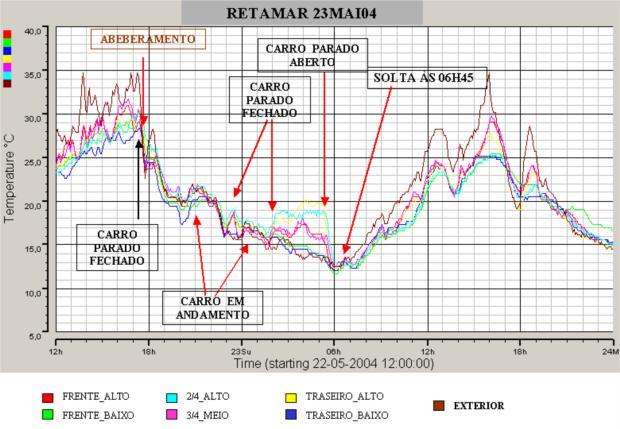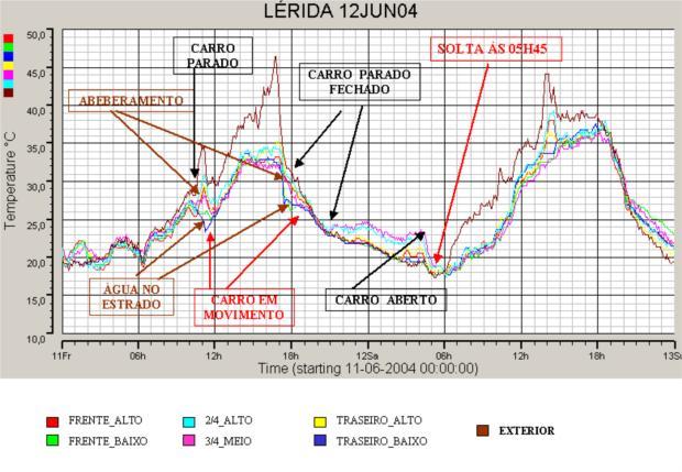 - A temperatura no interior da galera foi, por vezes, superior à temperatura exterior, com o carro em movimento;