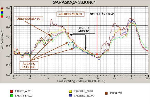 - Saliente-se que a temperatura exterior, extremamente elevada se deve a um dia extremamente quente mas o sensor, colocado na rectaguarda da Galera foi sempre ao Sol.