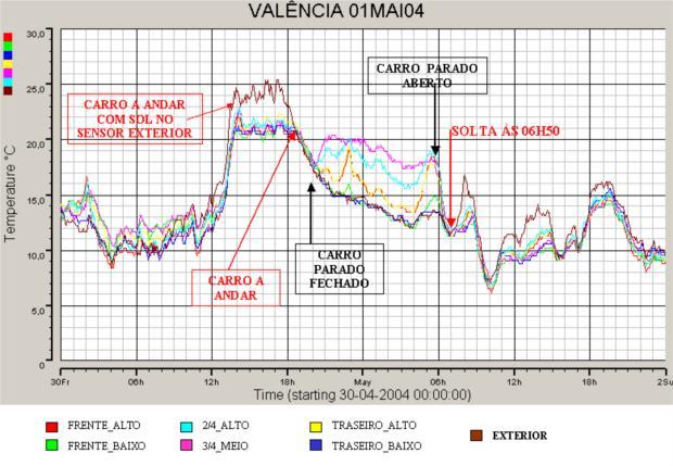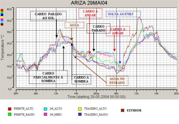- A temperatura no interior da galera foi sempre inferior à temperatura exterior, com o carro em movimento;