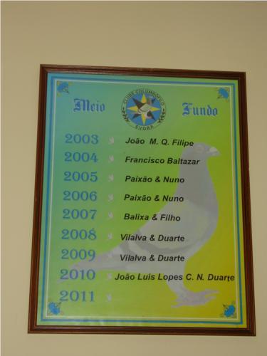 Galeria dos Campeões Meio Fundo - Clube Columbófilo de Évora