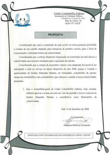 União Columbófila FafenseVoto de gratidão e louvor 2008