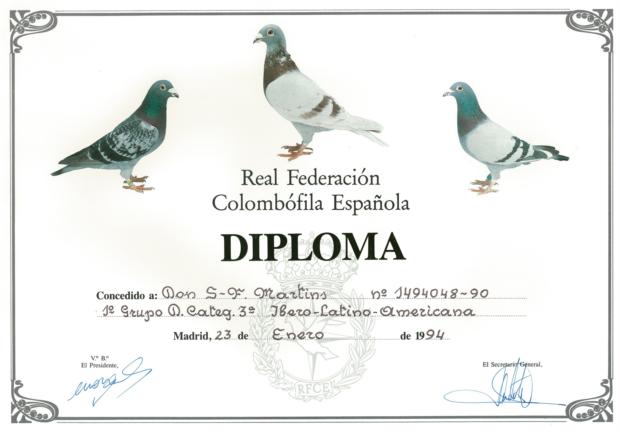 Real Federación Colombófila Española Pombo 1494048-90 - 1994