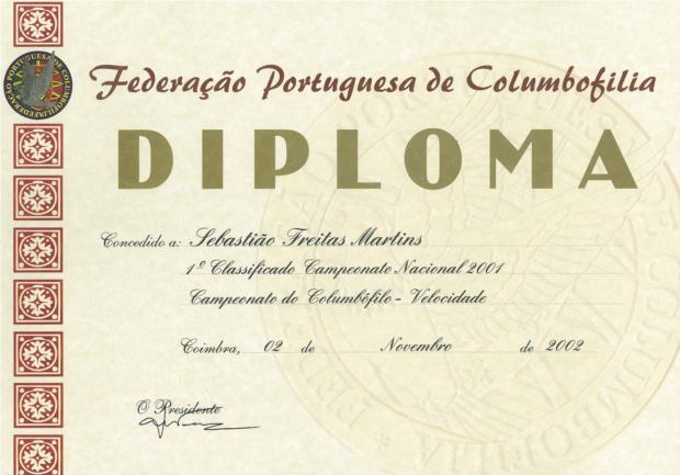 Federação Portuguesa de ColumbofiliaCampeonato Nacional 2001 - Columbófilo - Velocidade1º Classificado