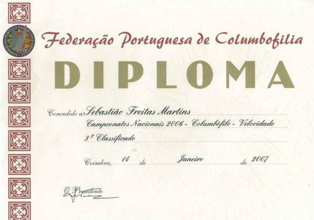 Federação Portuguesa de ColumbofiliaCampeonato Nacional 2006 - Columbófilo - Velocidade3º Classificado