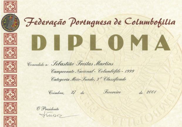 Federação Portuguesa de Columbofilia Campeonato Nacional Columbófilo 1999 - Meio-Fundo3º Classificado