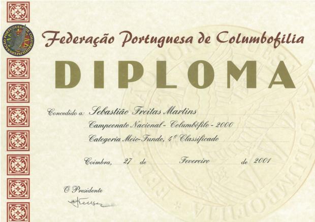 Federação Portuguesa de ColumbofiliaCampeonato Nacional 2000 - Columbófilo - Meio-Fundo 4º Classificado
