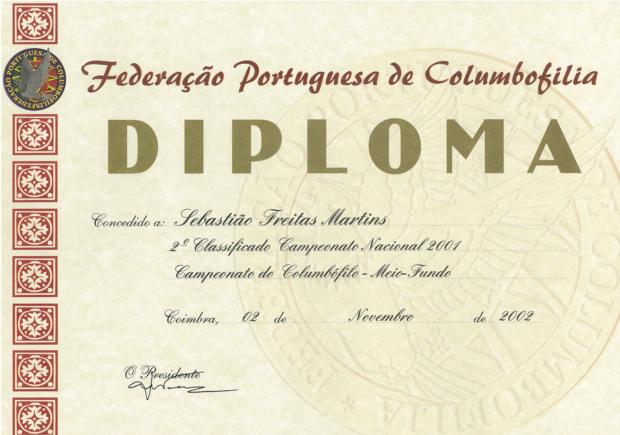 Federação Portuguesa de ColumbofiliaCampeonato Nacional 2001 - Columbófilo - Meio-Fundo2º Classificado