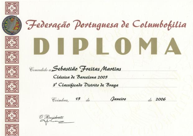 Federação Portuguesa de ColumbofiliaClássica Nacional de Barcelona 20053º Classificado Distrito de Braga