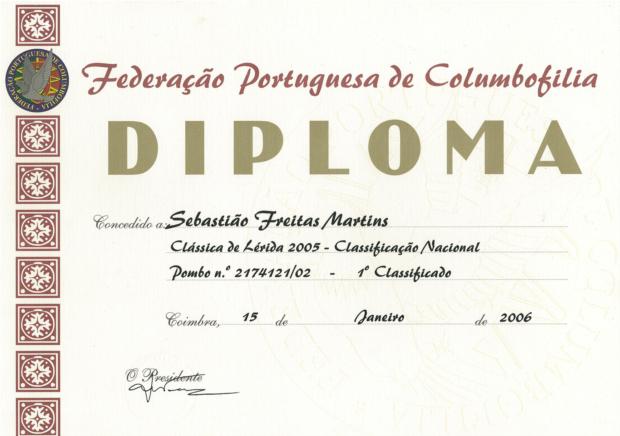 Federação Portuguesa de ColumbofiliaClássica de Lérida 2005 - Classificação Nacional Pombo 2174121/021º Classificado