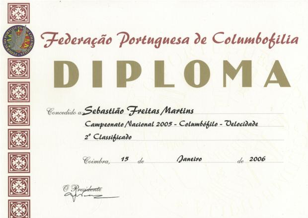 Federação Portuguesa de ColumbofiliaCampeonato Nacional 2005 - Columbófilo - Velocidade2º Classificado