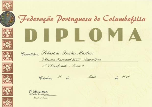 Federação Portuguesa de ColumbofiliaClássica Nacional 2009 - Barcelona2º Classificado - Zona 2