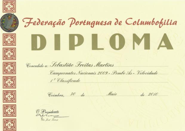 Federação Portuguesa de ColumbofiliaCampeonatos Nacionais 2009 - Pombos As - Velocidade1º Classificado