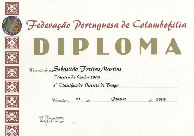 Federação Portuguesa de ColumbofiliaClássica de Lérida 20053º Classificado Distrito de Braga
