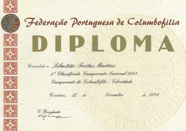 Federação Portuguesa de ColumbofiliaCampeonato Nacional 2004 - Columbófilo - Velocidade3º Classificado