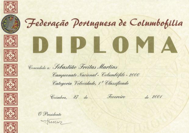 Federação Portuguesa de ColumbofiliaCampeonato Nacional 2000 - Columbófilo - Velocidade1º Classificado