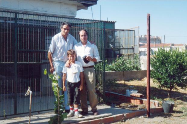 O grande José Torres, o pequeno João Pedro (meu filho) e eu nos Pombais do Castelo de S. Jorge, mina de pombos de excelente qualidade do saudoso Alexandre Mendes Gordo.