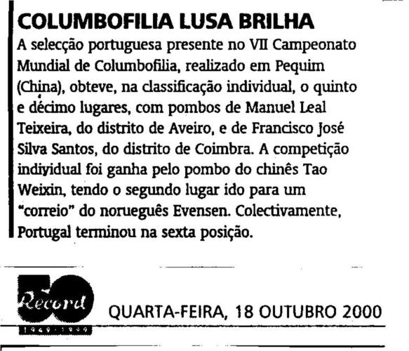 Início História Resultados Notícias Fotos Pombos Reprodutores Casais Contactos Links Livro de Visitas