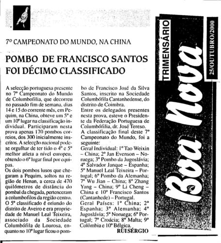 1º CLASSIFICADO NO POMBAL DA A.C.D. PORTO