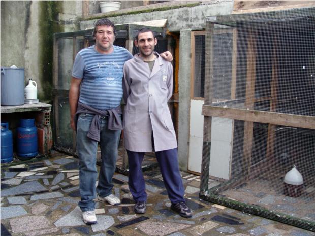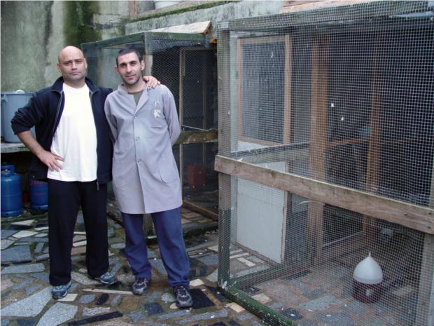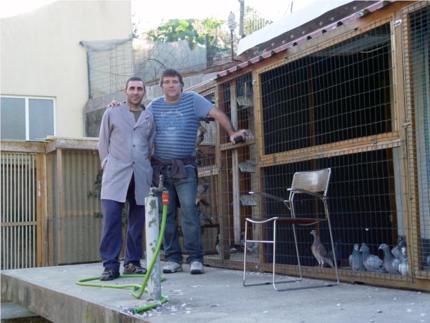 Jorge e Pedro junto ao pombal de voadores