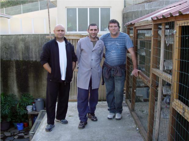 Junto ao pombal de reprodutores, Jorge, Pedro e Silva