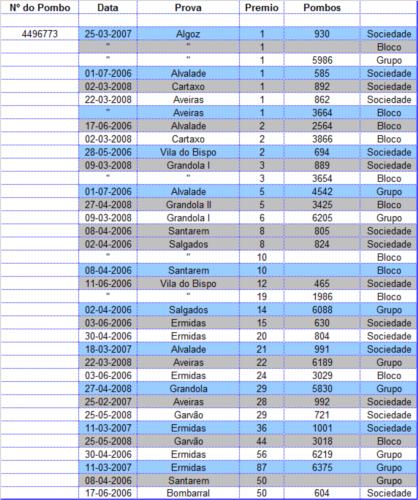 Pombo 4496773-04 1º Aveiras entre 3664 Pombos