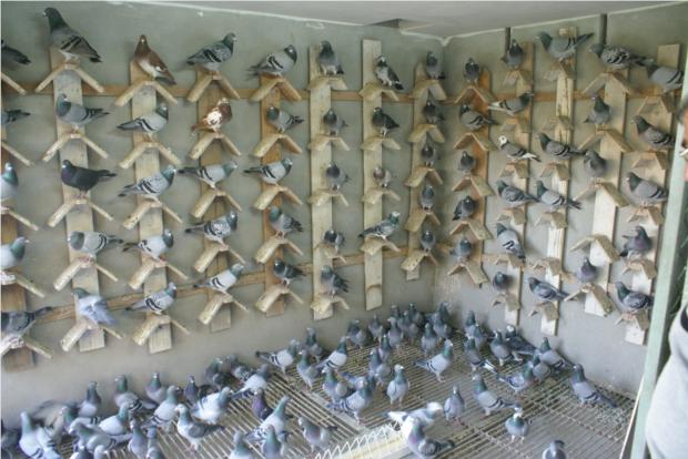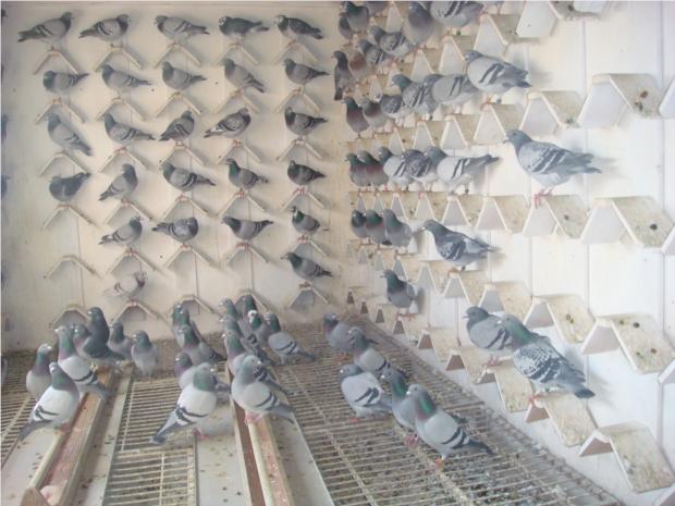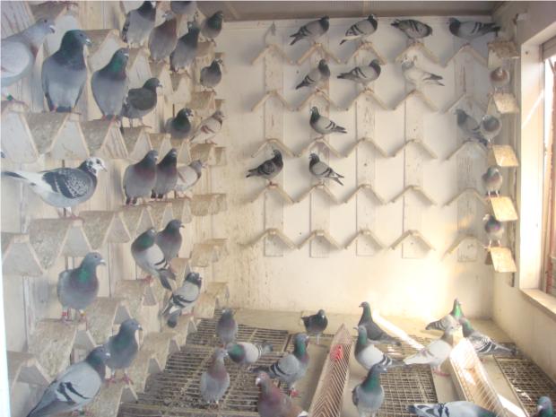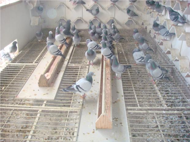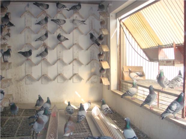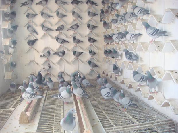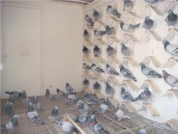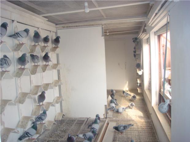 Pombal das fêmeas reprodutoras. As fêmeas voadoras fazem praticamente toda a muda neste pombal.