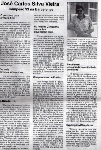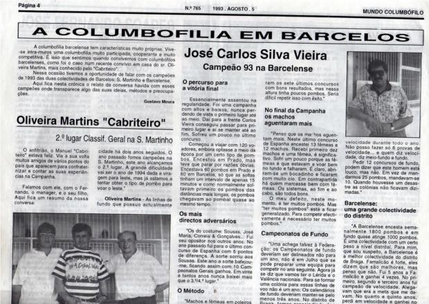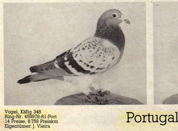 Extraordinario voador. Ao 5º ano foi Anilha de Ouro do Grupo Columbofilo Ninense, Sociedade Columbofila Barcelense, Sociedade Columbofila de Famalicão. Anilha de Ouro Distrital Braga (Grupo unico) e Pombo Olimpico em Dusseldorf - Alemanha 1987.