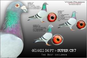 Atendendo aos resultados dos seus descendentes, vencedores de vários 1ºs prémios, desde Nisa (274Km) até Valência del Cid ( + de 700Km) foram introduzidos nos nossos reprodutores da nova geração, 46 filhos do SUPER CR7: Lenda Viva da Columbófilia Nacional ! Fenomenal Voador & Reprodutor Top !