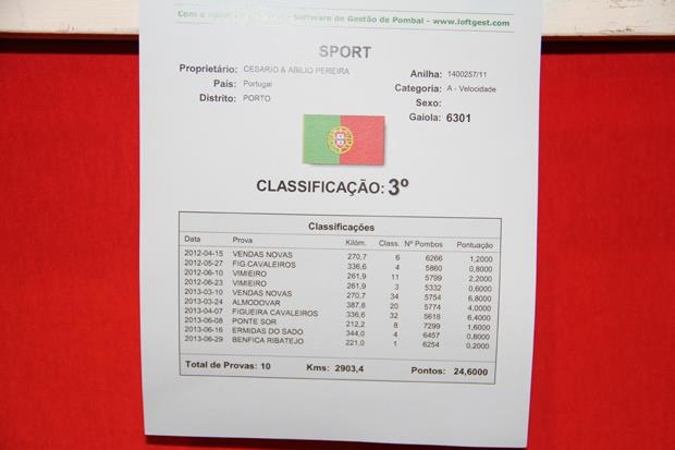 Início História Resultados Notícias Fotos Pombal Pombos Apresentações Quadro de Honra Casal Ouro nº1 Casal Ouro nº2 Casal Safira Casal Platina Voadores Descendentes CHANTILIE JUNIOR Descendentes SUPER CR7 Descendentes GABY VANDENABEELE Descendentes JANSSEN ARENDONK Descendentes OUTRAS LINHAS Contactos Links