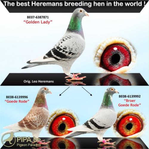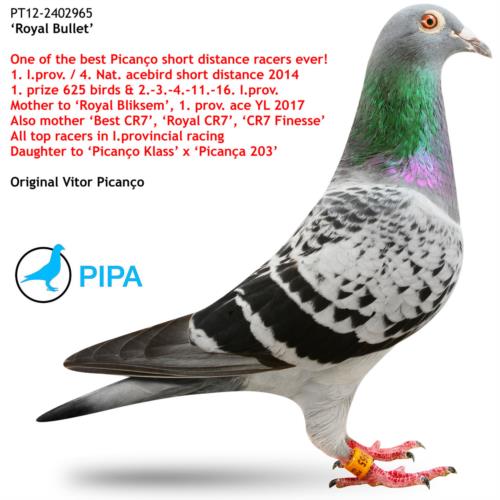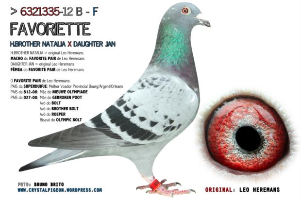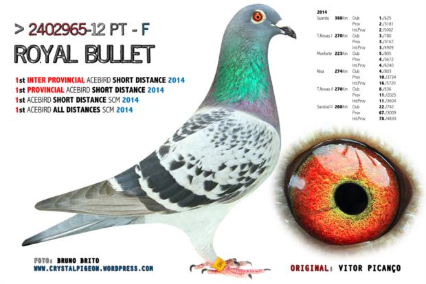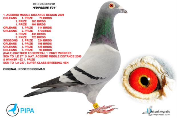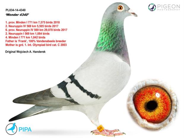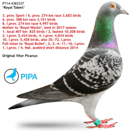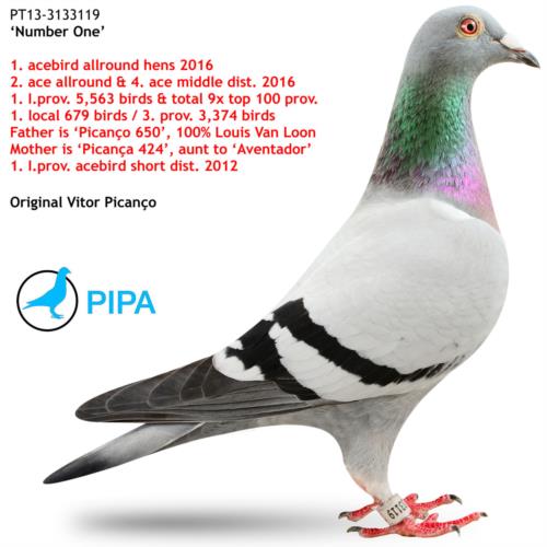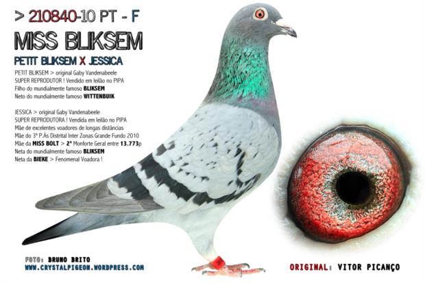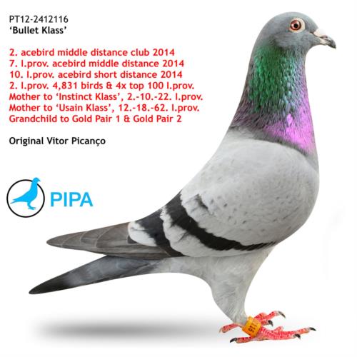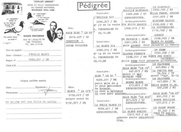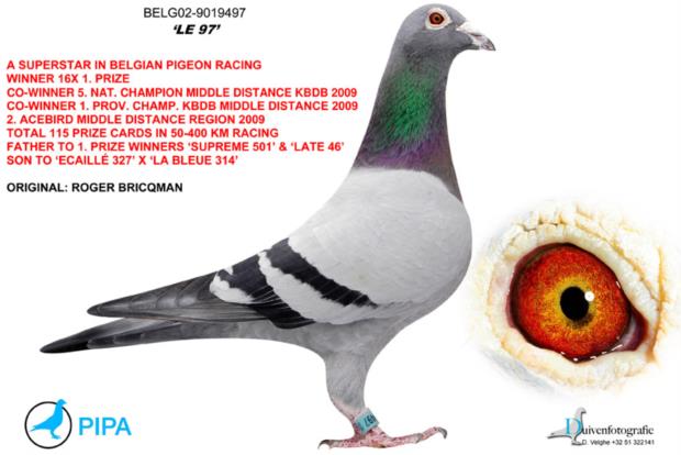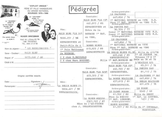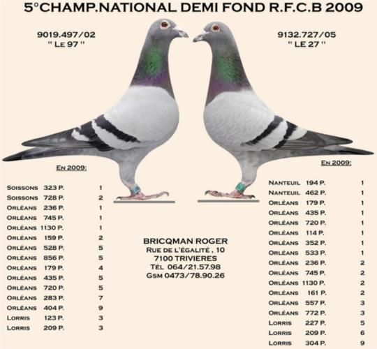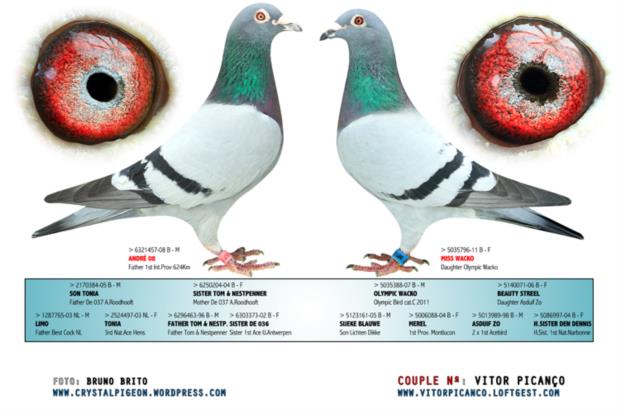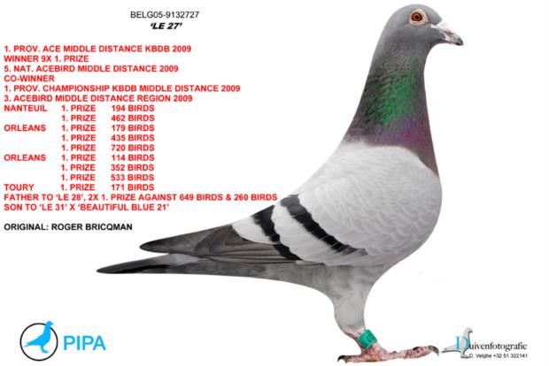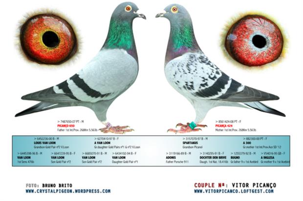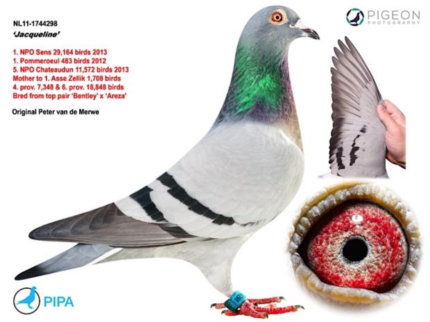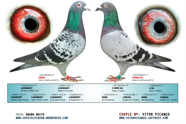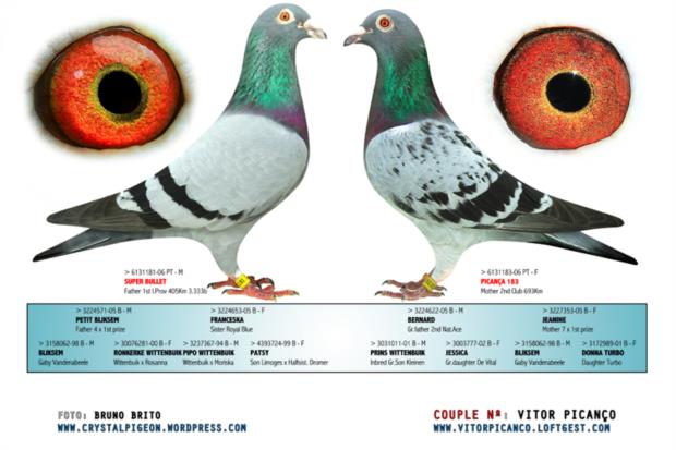 A "A Prima Bond" é filha do "Mister Bond", enquanto voador: Vencedor do 1º Nacional Bourges 2001 entre 10.221 pombos ! Enquanto reprodutor, é pai de: Maaseik 1./13.176p St Quentin 1./1.528p