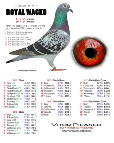 | Pai do 1º Provincial Minden 771Km entre 7575 pombos em 2018 |