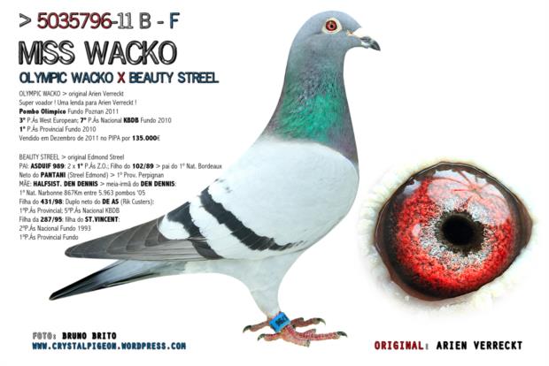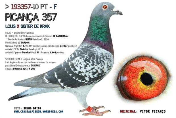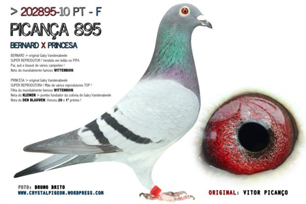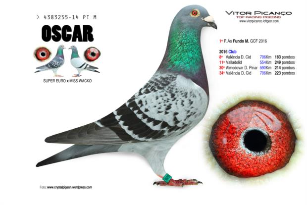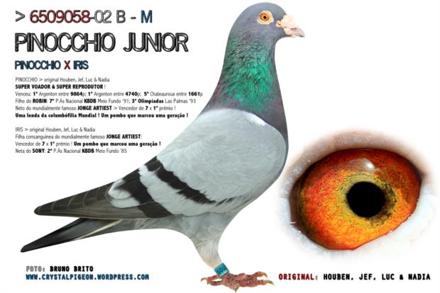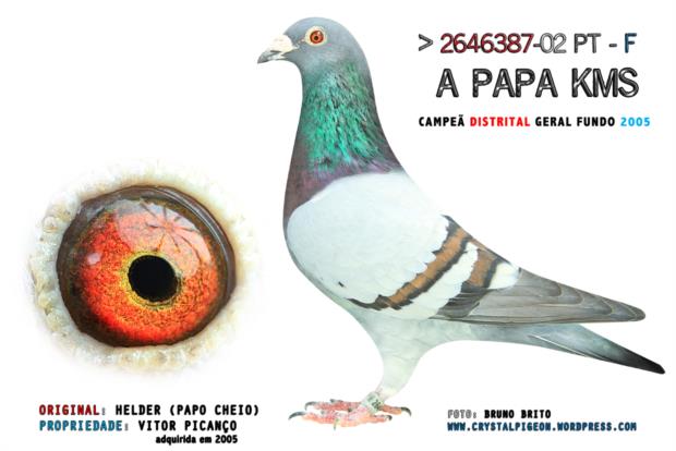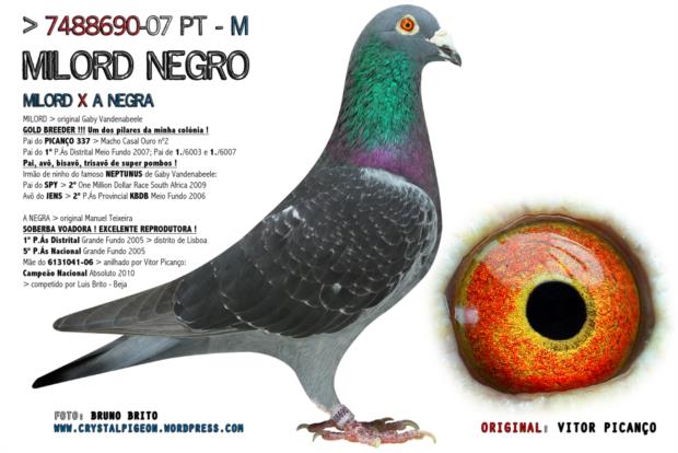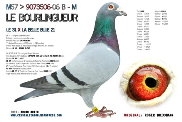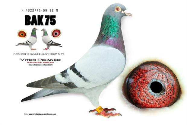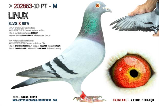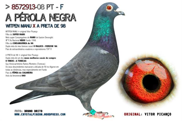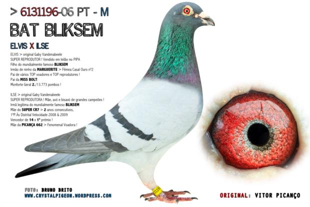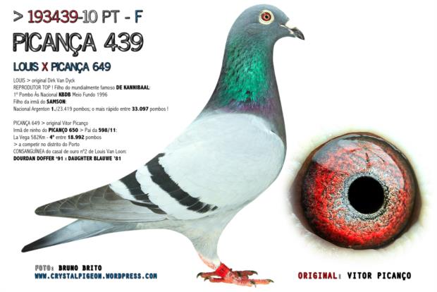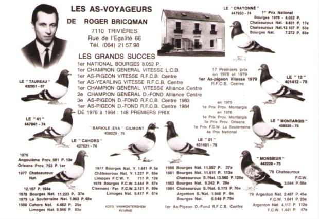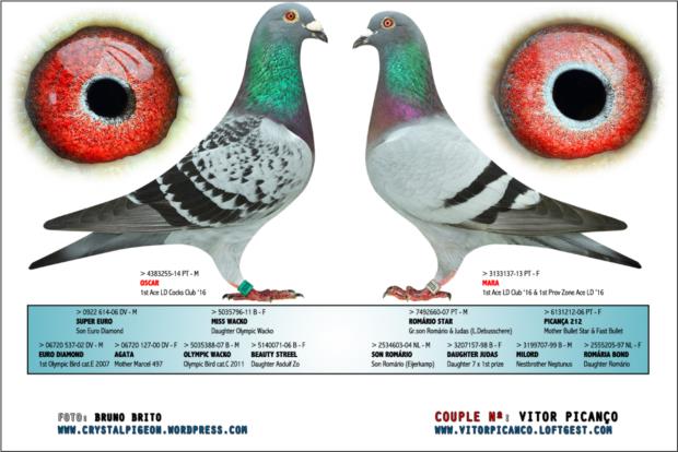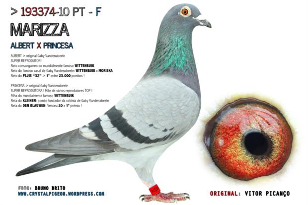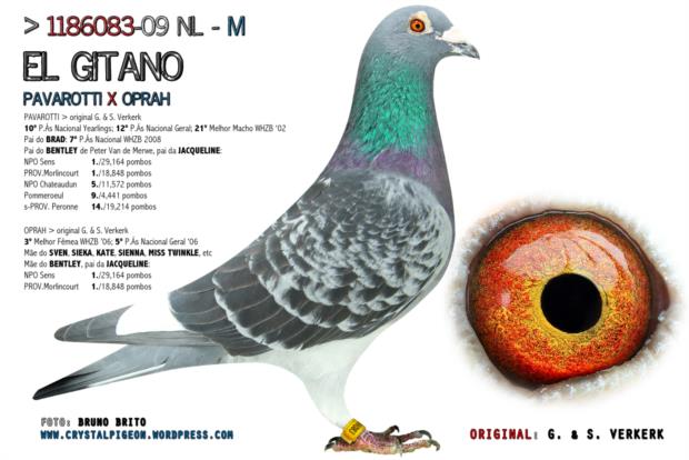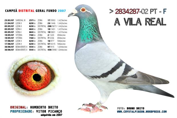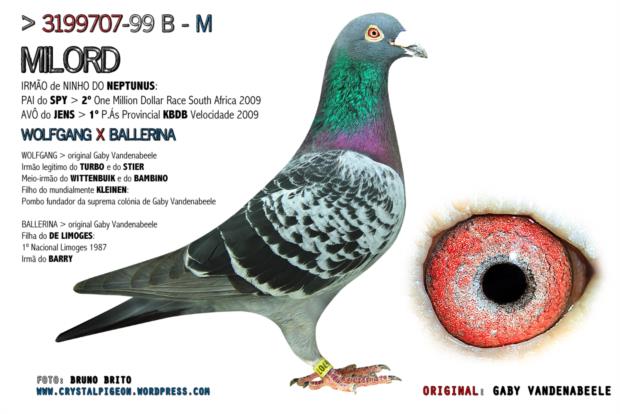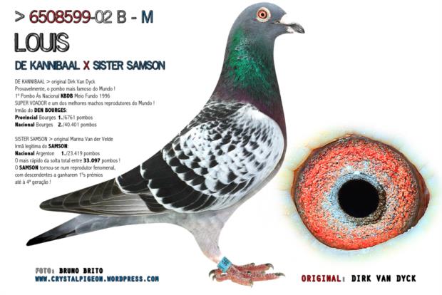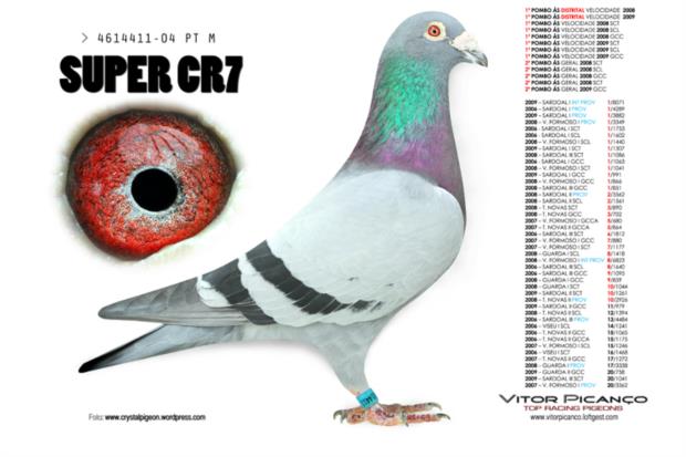 > 84856-93 GB - "O St. Vincent Junior" Filho do fenomenal "St. Vincent" Neto do campeão "De Bergerac" > vencedor do 1º Nacional Bergerac 1.029Km entre 36.737 pombos ! Com a vitória nesta prova ganhou um automóvel. Duas semanas antes desta conquista, o "De Bergerac" tinha conquistado o 8º Nacional Ruffec 917Km entre 32.703 pombos ! Este pombo foi adquirido por mim à Louella e foi o primeiro pombo que adquiri de um valor elevado.