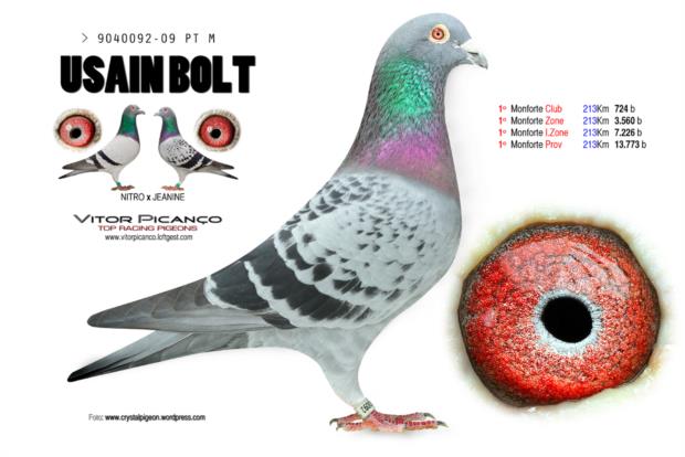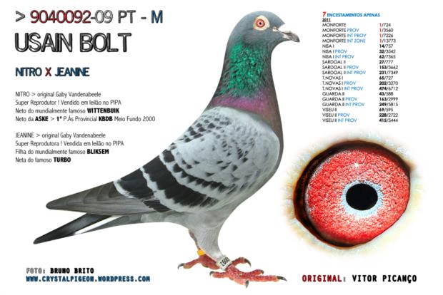 Veja o novo video demonstração da corrida de Monforte 2011 onde o "Usain Bolt" e "Miss Bolt" fizeram 1º e 2º entre 13.773 pombos. Este dois pombos chegaram juntos e marcaram com uma diferença de 1 segundo entre eles.