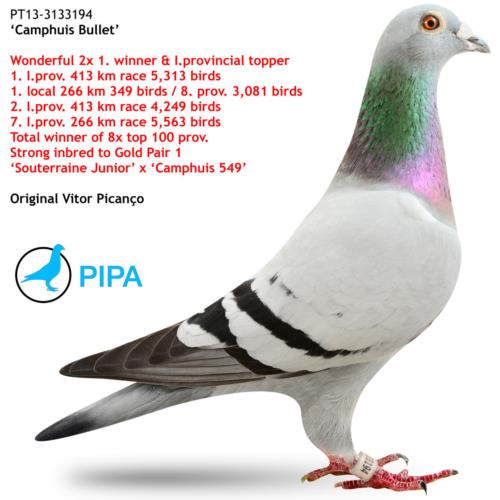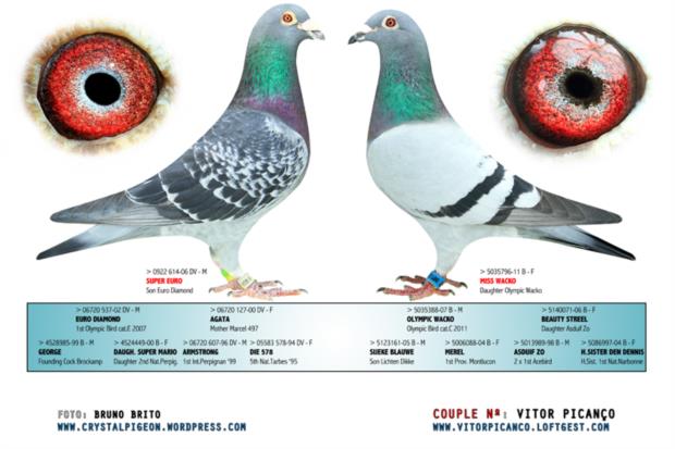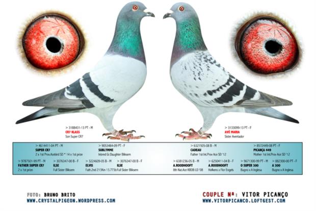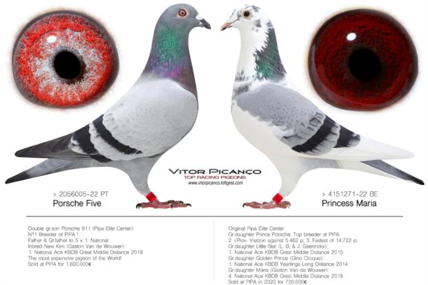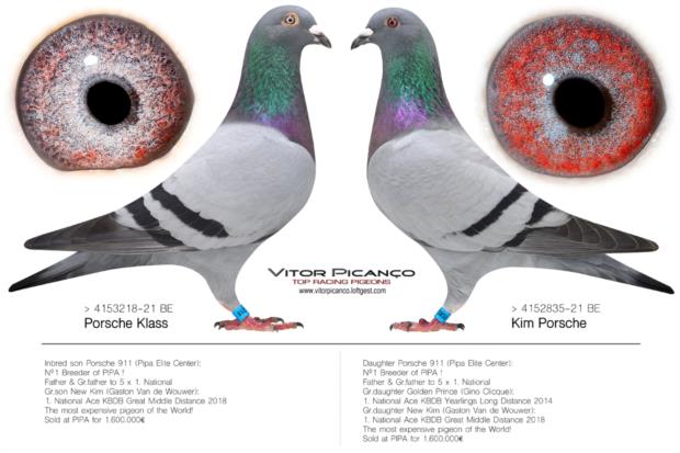 * 1 duplo neto do Porsche 911 e consanguíneo da New Kim ( Vendida no PIPA por 1.600.000€ ( o pombo mais caro do Mundo! )) > 2056300-22 PT M Porsche 300