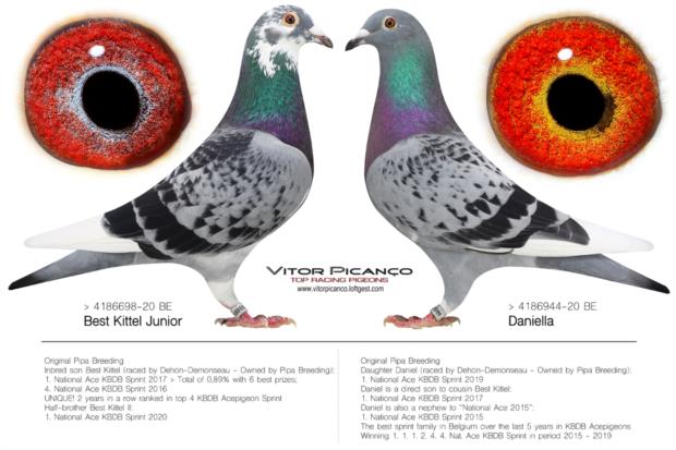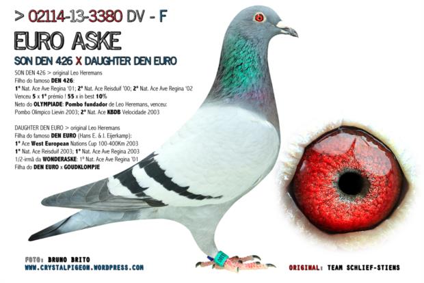 A "A Turbo" é filha do "Turbo" de Gaby Vandenabeele, enquanto voador: 1º Pombo Ás Fundo 1993 2º Pombo Ás Fundo 1994 A "A Turbo" é neta do "Superman" x "Superkeekster", pais de: 1º Pombo Ás Nacional Fundo Bélgica 1991 4º Pombo Ás Nacional Fundo Bélgica 1991 1º Pombo Ás Provincial Fundo Bélgica 1993