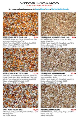 Vai constatar que claramente que os pombos vão treinar e competir mais facilmente. Com esta mistura vai aumentar o rendimento mais para o fim da semana.