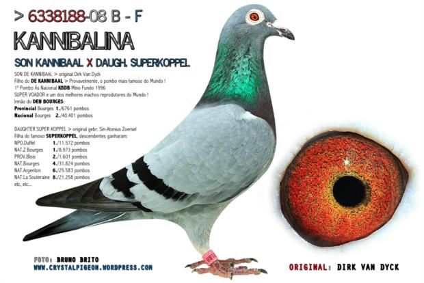 A mãe é a famosa "Super Kannibaaltje": Mãe de +11x 1. winners Mãe de +20x top 100 Nat(z) Mãe de +60x in best 100% O seu pai é o "Sunny Boy": filho do mundialmente famoso "De Kannibaal" A sua mãe é a "Forina": super consanguínea da famosa "Fieneke 5000":