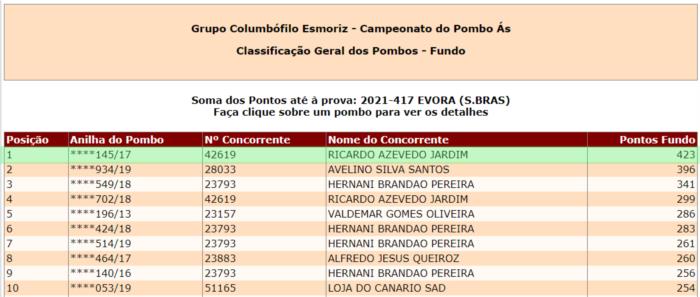 Mais um resultado de Topo a Nível Distrital para Descendentes do Casal 200 X 'Cega', agora em Aveiro. Uma fêmea que em fundo venceu: Anilha de ouro de Sociedade, Anilha de Ouro de Sector e 3º de todo o Distrito de Aveiro. Esta crack é filha do "50" que foi o meu melhor borracho no último ano que viajei em 2017, marcou 9 prémios, adquirido por um amigo (desconhecido na altura) Ricardo. Esse macho é filho da "296", irmã da 200, cruzada com o "571", neto da cega. Disse o amigo Ricardo que este ano, com as 3 filhas do "50" que fizeram fundo marcava em todas as provas de fundo pelo menos duas delas. Mérito também para o amigo Ricardo que soube conduzir as atletas e também acertou no cruzamento com uma fêmea das suas, embora tudo indique que a veia de fundo venha da 'Cega'. O '571', pai do "50" e neto da 'Cega' é aliás, pai de umas das fêmeas que publiquei recentemente com excelente prestação na prova Inter-Regional Norte de Soses. P.S. Apenas publico resultados que me dizem e têm gosto que publique. E quem me diz também fica a ganhar com isso 😉