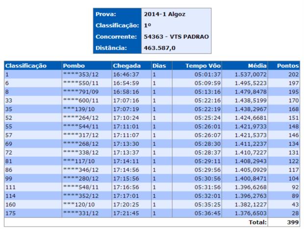 Posto isto, vem a primeira prova distrital (Algoz - 06 Abr) onde o leque de pombos começa a abrir muito mais cedo, com vento variável, não há arrastamento de pombos para fora da sua linha, nem pombos a ter que voar sobre o mar para regressar ao pombal, assim cada um segue o seu caminho com verdade desportiva...