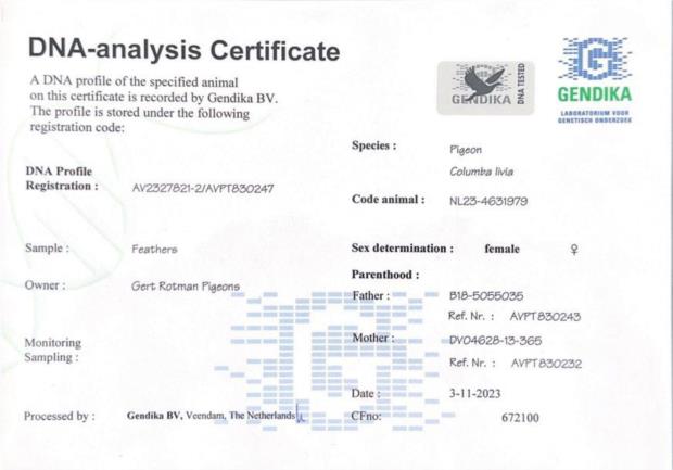 Em boa hora foi feita esta aquisição, depois dela epenas foi cedido um irmão num leilão da Herbots onde o Rotman anunciou que seria o último a sair do seu pombal, pombo que seguiu para a china por uma pequena fortuna. E vem também com certificado ADN.