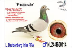 | Pai: 8600114/24 HOL - "Principorsche" | Mãe: 3137177/13 POR - "177" | "Principorsche" Filho de 2 originais PIPA, cruzamento de uma filha do Porsche 911 com um filho do Prince Porsche, dosi super reprodutores desta linhagem. É ainda neto da Sister Porsche e da Louise. Consanguíneo do casal de Ouro Wacko Freddy x Lieve. Uma Super Linhagem para MF e Fundo que se tem destacado com descendentes a vencerem a sério por todo o mundo. Porsche 911: 5º Ás Nac. Pigeon MF Longo YLs KBDB ’15 7º Nac. Chateauroux 25,710 p. 11º Nac. Bourges 21,522 p. 52º Nac. Montluçon 16,982 p. 38º Nac. Zona Argenton 5,327 p. Super Reprodutor desta linhagem!