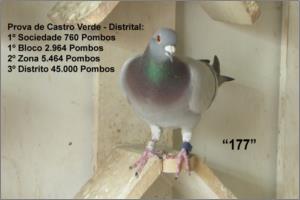 | "Filha da 62" Pedrada, chegou a voar em borracha fez várias provas duras mesmo para adultos e regressou sempre bem, colocada na reprodução porque a sua mãe deixou de pôr e já era mãe de diversos pombos excelentes fundistas com vários machos, pombos que quanto mais dura a prova melhor chegavam, uma filha chegava de provas de quase 800 Km e dava várias voltas a bater à asa para o espanto de muitos!