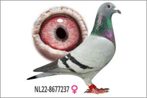 "Kittel Best Kittel" Pedrada Macô, Van den Bulck x Demonseau, Extraordinária fêmea, neta do Kittel e do Best Kittel, os dois melhores pombos Ás de sempre de velocidade na Bélgica, é ainda neta duma irmã da Olympic Rosita, a mãe do Kittel. O seu pai é Avô da 637/21 vencedor de 1º Nacional na Alemanha contra 5.840 p.