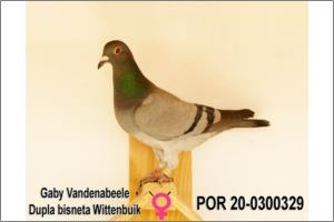 "A Wittenbuik" Azul,Gaby Vandenabele filha de dois netos do lendário Wittenbuik. O pai é um grande reprodutor com vários filhos e netos cracks, é filho da Princesa de V. Picanço cruzado comoutro super reprodutor, o Gaby 618, neto do Bliksem. A mãe, também neta do Wittenbuik e bisneta do Bliksem, mãe de vários pombos top no pombal de um campeão Distrital.