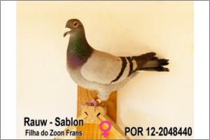 "A Zoon Frans" Azul, Rauw Sablon, mãe de vários pombos cracks Filha do 'Zoon Frans', filho do Super Reprodutor 'Frans' conhecido mundialmente e o melhor filho do imortal casal base Albert x Paola. A mãe é a Lady Fortuna, neta do Freddy, pombo base de Vandenheed linha Sablon, e filha Jutta, pomba Olímpica no Porto com várias classificações Top Nacional