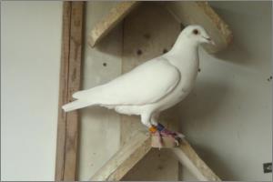 "Algarvia" "Algarvia" Mais uma pomba que deixou a sua marca, vinda do algarve através de um columbófilo amigo que trouxe 5 e nos deu 1, revelou-se uma grande voadora sobretudo no fundo, onde ajudou a ganhar Títulos de bloco e 3º Distrital. 2º contra 430 p. 6º contra 474 p. 21º contra 404 p. etc. Ainda reproduziu a "999", super voadora de fundo agora na reprodução, um filho faz 15 prémios eganha melhor